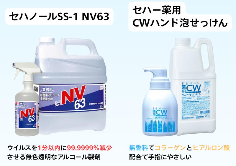 正しい手洗いの効果を最大限に発揮させる為には、適切な「手洗い用せっけん」と「除菌用アルコール製剤」の使用がおすすめです。下記リンク先より、セハージャパンのノロウイルス対策製品もぜひご覧ください。