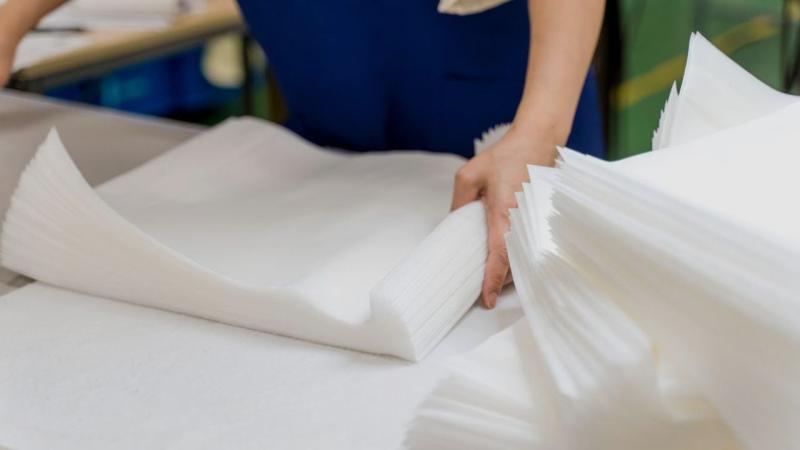 さらに人の肌にふれる衛生材、レストランのお子さま用エプロン、避難者のプライベートを守るパーテーションなど、人の体や心をつつむ役割も広がっています。地球環境に優しい素材選び、製造の工夫も進んでいます。