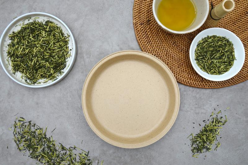 「Reeep(リープ)」は、国内製造のパルプモールド容器です。原料にはパルプと食品廃材である茶殻を混ぜて製造しており、土に還る生分解性を備えています。