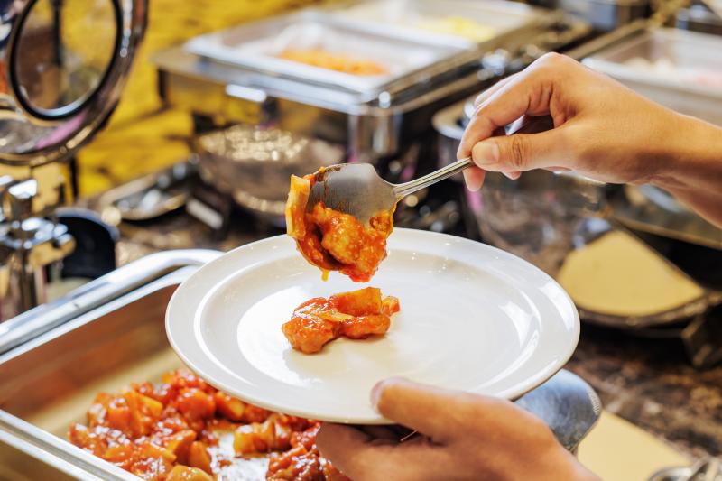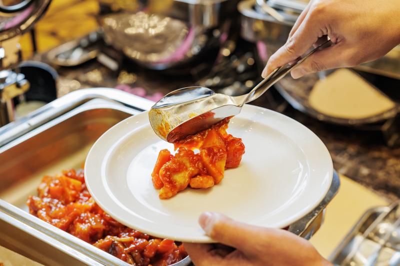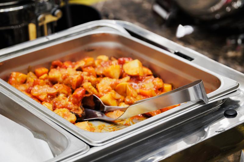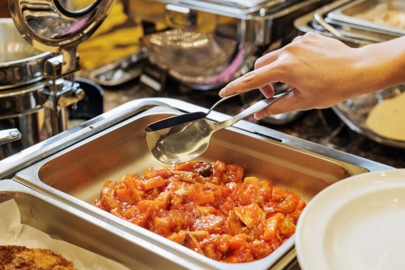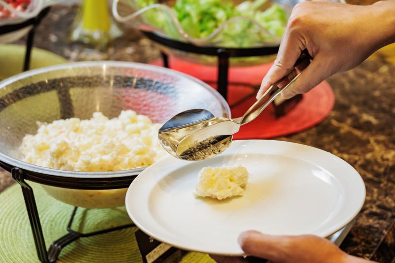 ビュッフェで取り分けに使われるトングやサーバースプーンは粘り気のある料理(ポテトサラダ、スクランブルエッグ、酢豚など)が苦手。