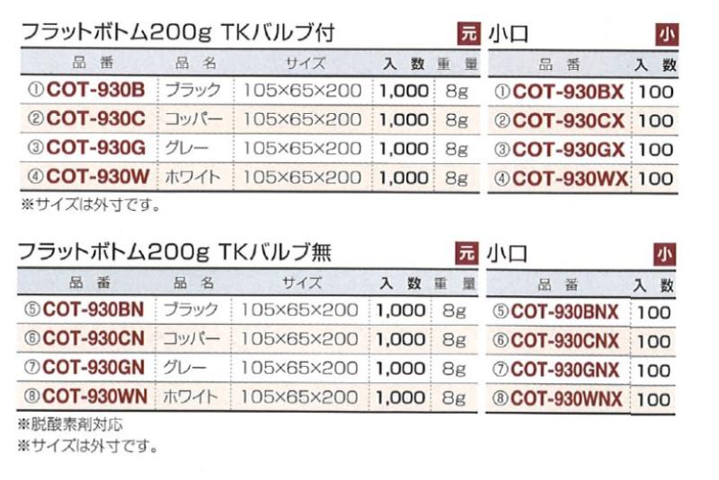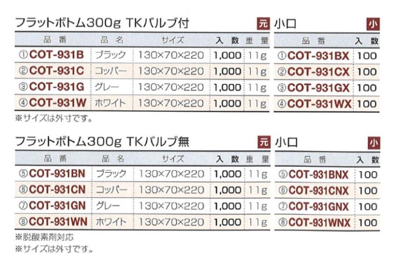 バルブ無しタイプは、お茶や焼き菓子など幅広い食品に使用できます。