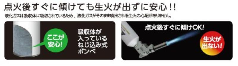 ガス自体は安全のため元々有臭ですが、「KC-800」のようにガス噴出後すぐに点火できるトーチを使用することで、