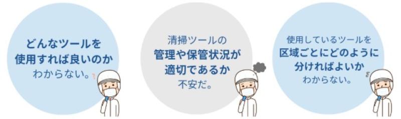 ・どんなツールを使用すれば良いのか分からない。・清掃ツールの管理や保管状況が適切であるか不安だ。