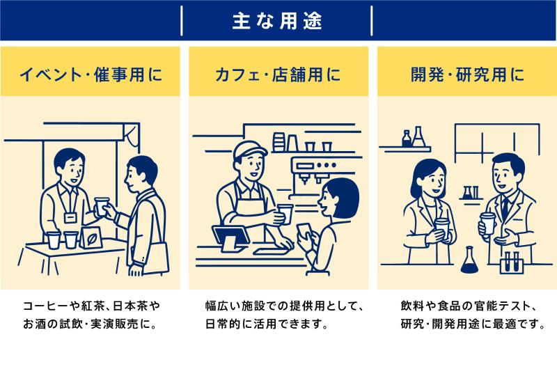 飲料や食品の官能テスト、研究・開発用途に最適です。