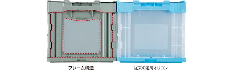各面は透明窓とその周りを囲むフレームの二重構造になっており、内容物の視認性と優れた圧縮強度、耐衝撃性を両立。