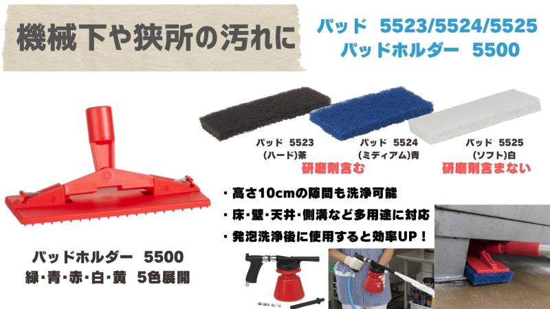 おすすめ:パッド5523/5524/5525 + パッドホルダー5500・高さ約10cmの隙間も洗浄可能