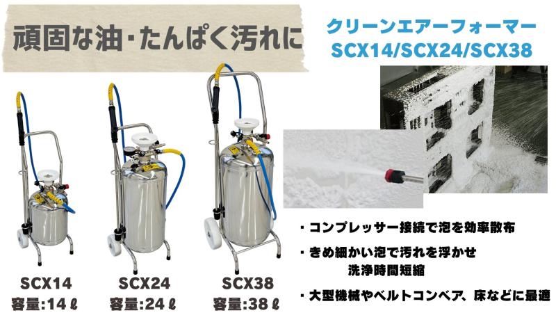 おすすめ:クリーンエアーフォーマー SCX14、SCX24、SCX38・コンプレッサー接続で泡を効率散布