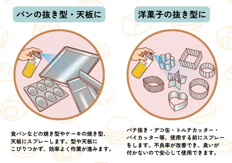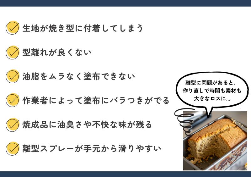 離型性はもちろんのこと、焼き型の型抜き・焼きむらもなく作業性の向上にお役にたちます。