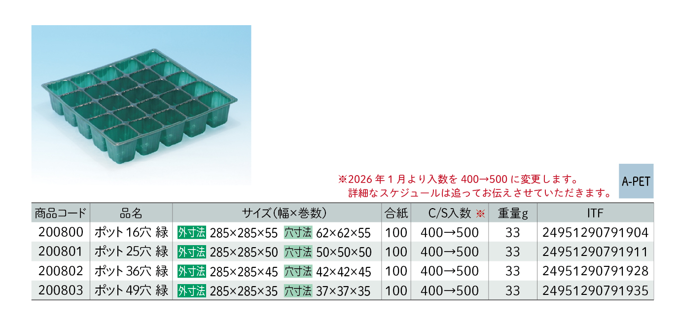 ポットが連結されていることで、運搬や定植の作業が効率化され、農業従事者の手間を大幅に削減します。