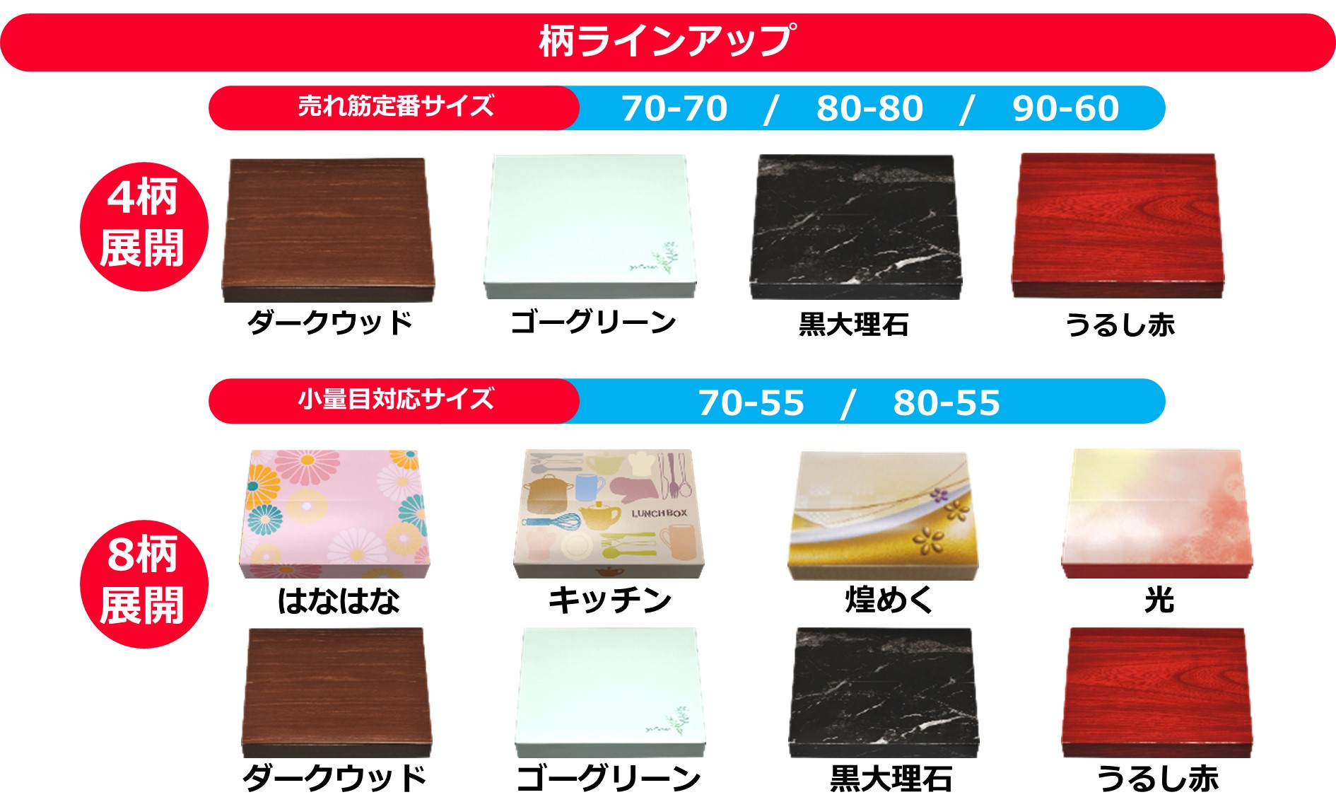 選べる規格柄、中仕切で組み合わせは自由自在!