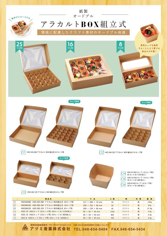 BOXサイズは3種類(8カップ用、16カップ用、25カップ用)BOXはお客様の組み立てが必要になります(納品時は平らな状態)