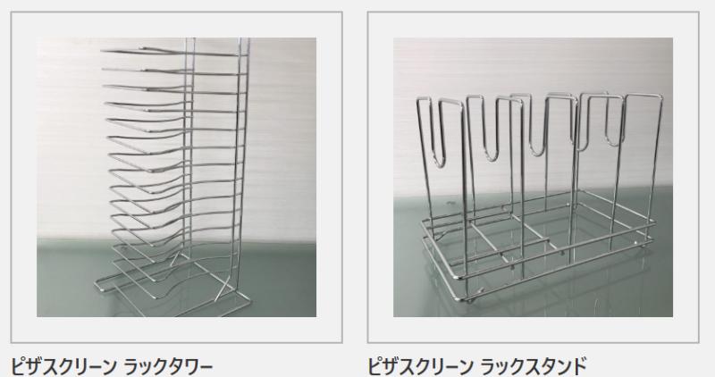 タワー型は、300×300×700mm のステンレス製ラック。ピザスクリーンを縦方向に最大15枚まで収納でき、成形済み生地のストックや焼き上がりピザの粗熱取りラックとして活用できます。