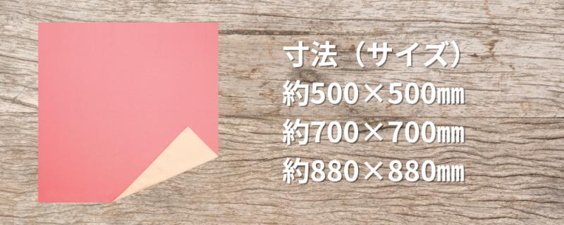 | 単品サイズ | 華優彩 中巾 両面無地 桃×薄黄 約500×500㎜ 1,000枚(100枚×10袋) 華優彩 二巾 両面無地 桃×薄黄 約700×700㎜ 500枚(50枚×10袋) 華優彩 二四巾 両面無地 桃×薄黄 約880×880㎜ 300枚(50枚×6袋) |