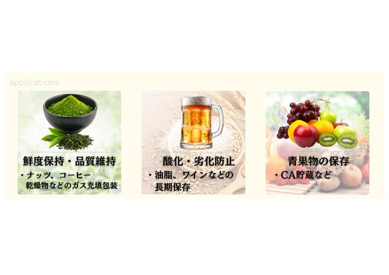 製造・包装・保管工程において安定した窒素雰囲気を作り出すことで、品質のばらつきや不良リスクを低減し、保存性の向上と品質維持の両立を実現します。