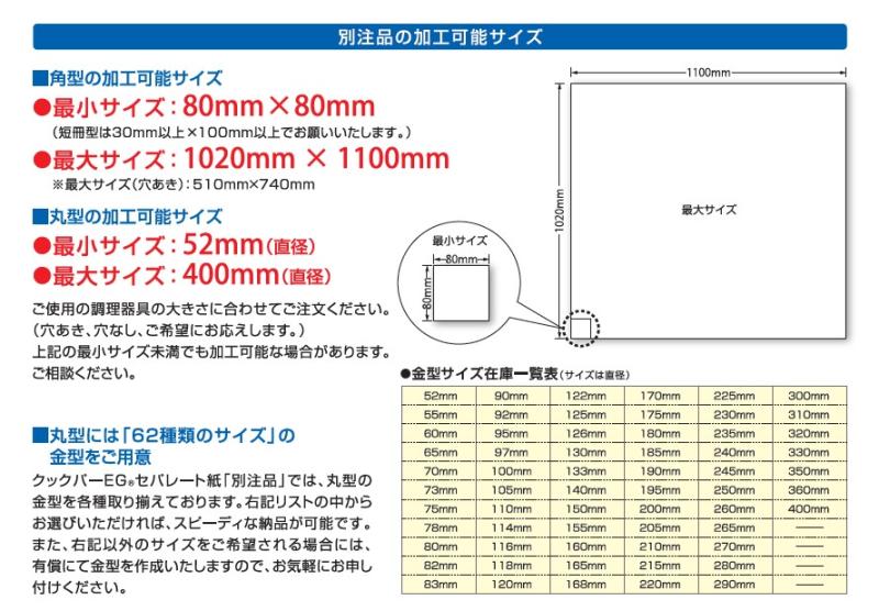 (ご希望サイズがない場合は有償にて金型を作成いたします。)