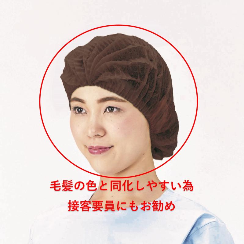 毛髪落着を防ぐ為のインナーキャップとして使用できます。茶色なので髪色と同化し接客要員が着用しても違和感がありません。