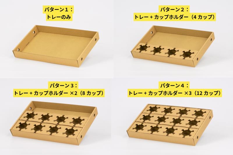 トレーには、カップホルダーが最大で3個セット可能!一度に12個のカップを運ぶことができます。
