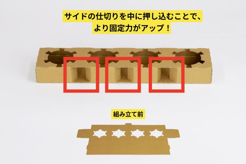 ※サイドの仕切りを中に押し込むことで、より固定力がアップ! 持ち歩きも安心です。