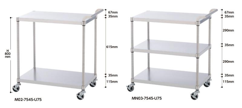| 素材 | SUS430/SUS304 キャスター:75φウレタン車、自在ストッパー付4個 |