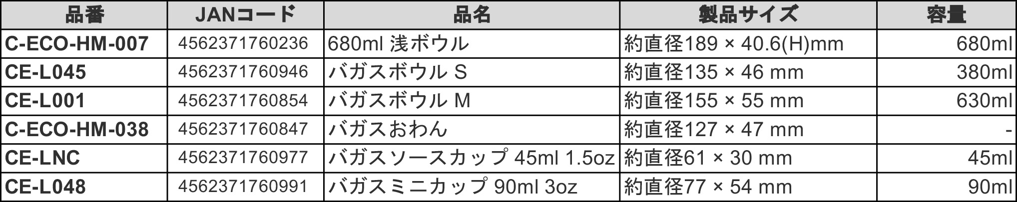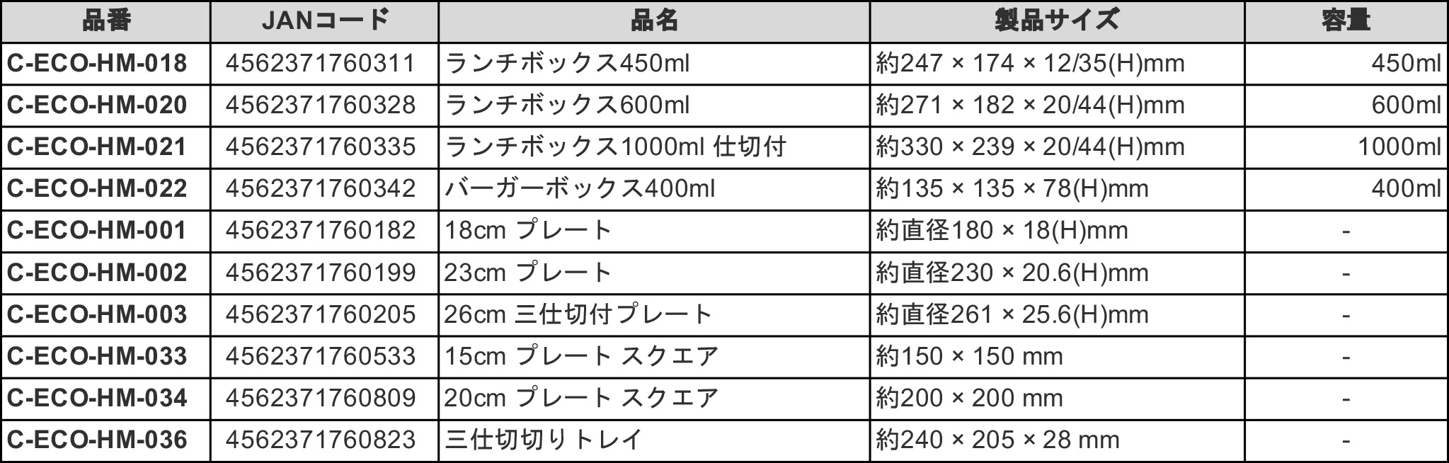 バガスモールド 製品ラインナップ一覧