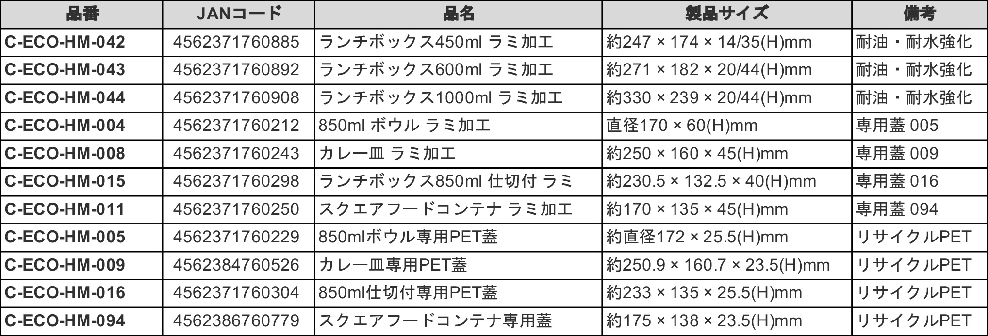 • 進化した「内面ラミ加工」シリーズ 内面にPPコーティングを施したシリーズも展開。汁気の多い料理や、より高い耐水・耐油性が求められるメニューにも柔軟に対応可能です。