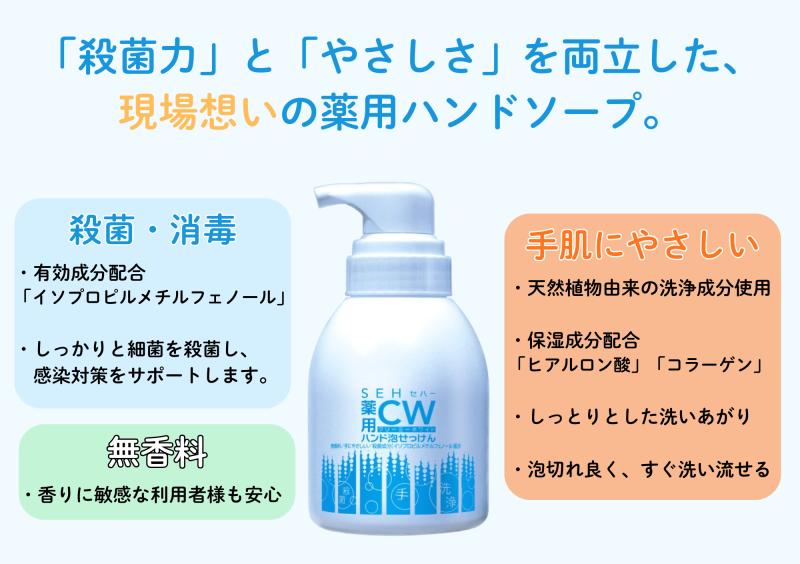 現場で求められる、日常の手洗い対策「セハー薬用CWハンド泡せっけん」