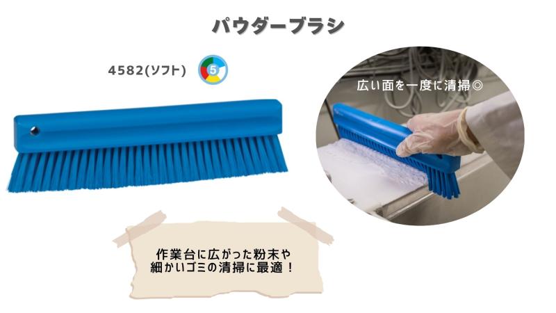 作業台や機械、番重などに付着した粉を除去するのに使用されております。