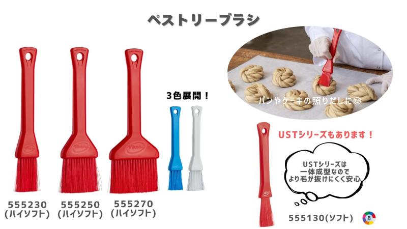 幅が30mm・50mm・70mmの3種類を展開しております。ペストリーブラシは「刷毛」です。