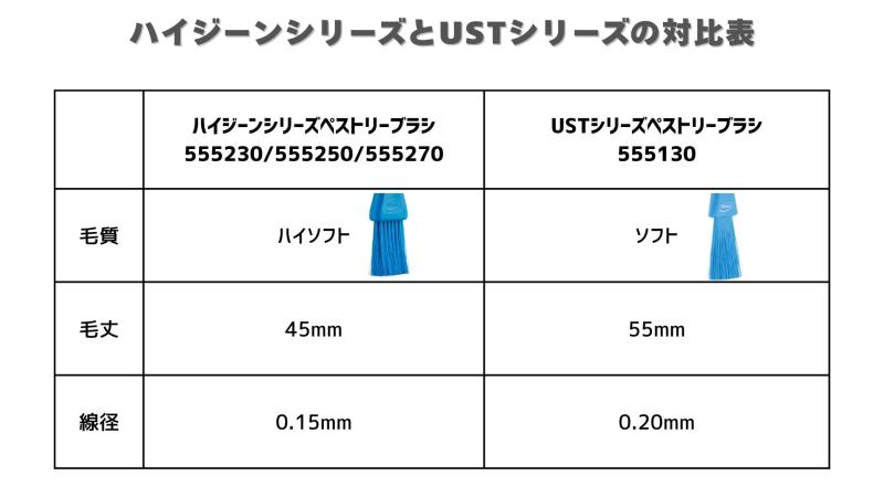 ハイジーンシリーズとUSTシリーズの対比表