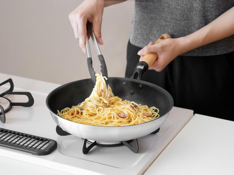 「ファストクック+」シリーズには、使い勝手に合わせて選べるアイテムが揃っています。定番のフライパンに加え、きれいに焼ける玉子焼き、煮込みにも便利な極深タイプなど、日々の料理を支えるラインナップです。さらに今回、片手鍋と両手鍋も新たに加わり、使える幅がいっそう広がりました。