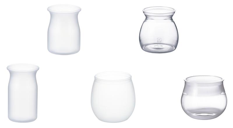 | 単品サイズ | ①サイズ:55Φ×55H 容量:125ml 単重:12.0g ②サイズ:55Φ×65H 容量:165ml 単重:9.2g ③サイズ:55Φ×68H 容量:165ml 単重:13.8g ④サイズ:55Φ×72H 容量:125ml 単重:9.0g ⑤サイズ:55Φ×90H 容量:155ml 単重:12.0g |