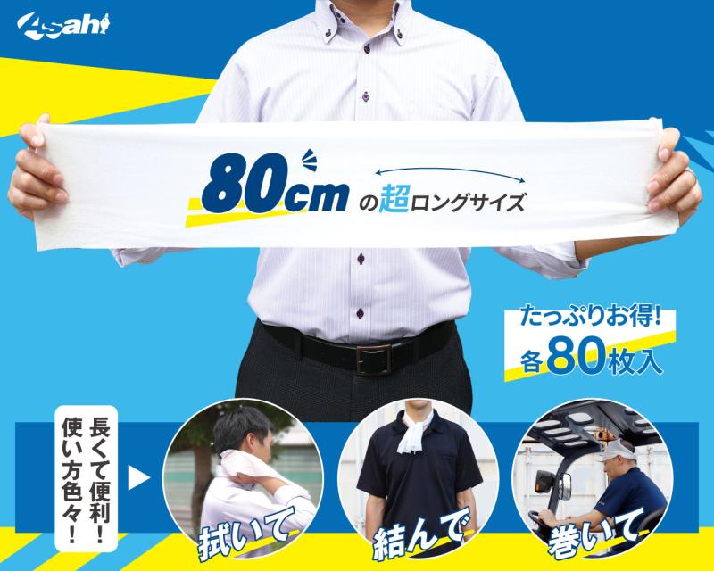 こうした現場ニーズに対応するのが、長さ約80cmのロングサイズの汗拭きシートです。