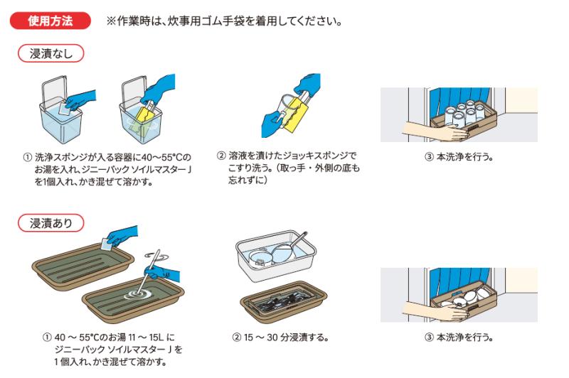 油汚れ・タンパク質のこびりつきに効果的で、こすり洗いの負担を軽減。