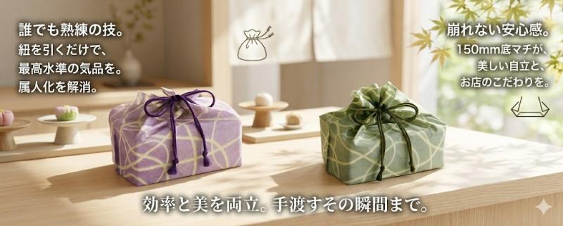 ・「この150mmのマチが、ギフトに『崩れない安心感』をプラスします。自立した美しいシルエットを維持することで、お客様が手渡すその瞬間まで、お店のこだわりを形に留めます」