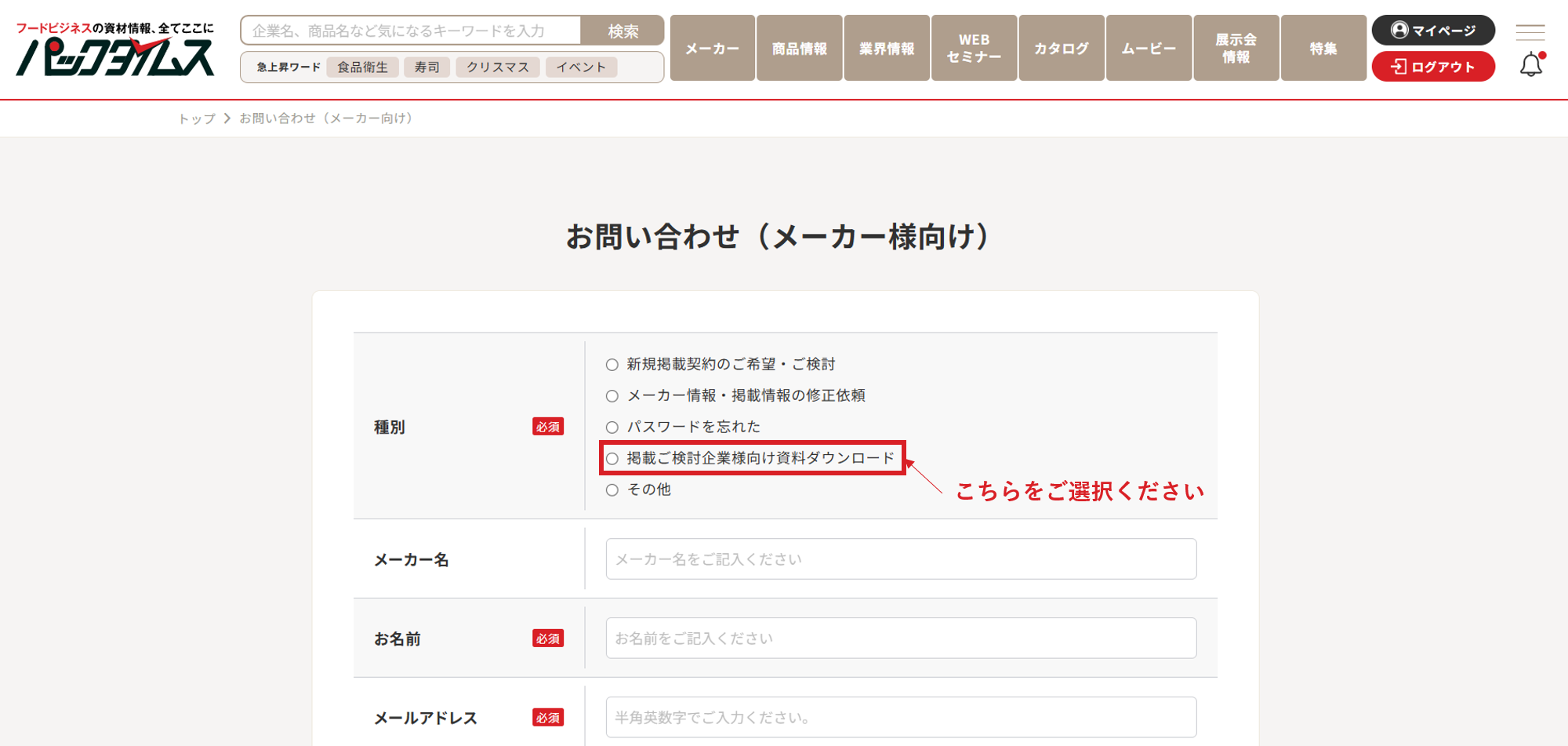ただし、会員限定コンテンツの閲覧やカタログ・リーフレットのダウンロードには、「無料会員登録」が必要です。