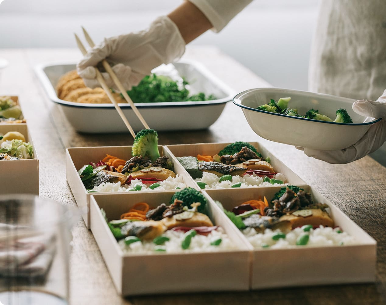 当社では、食品包装容器や資材、衛生関連商品、環境対応品、厨房用品の企画・製造を行っております。