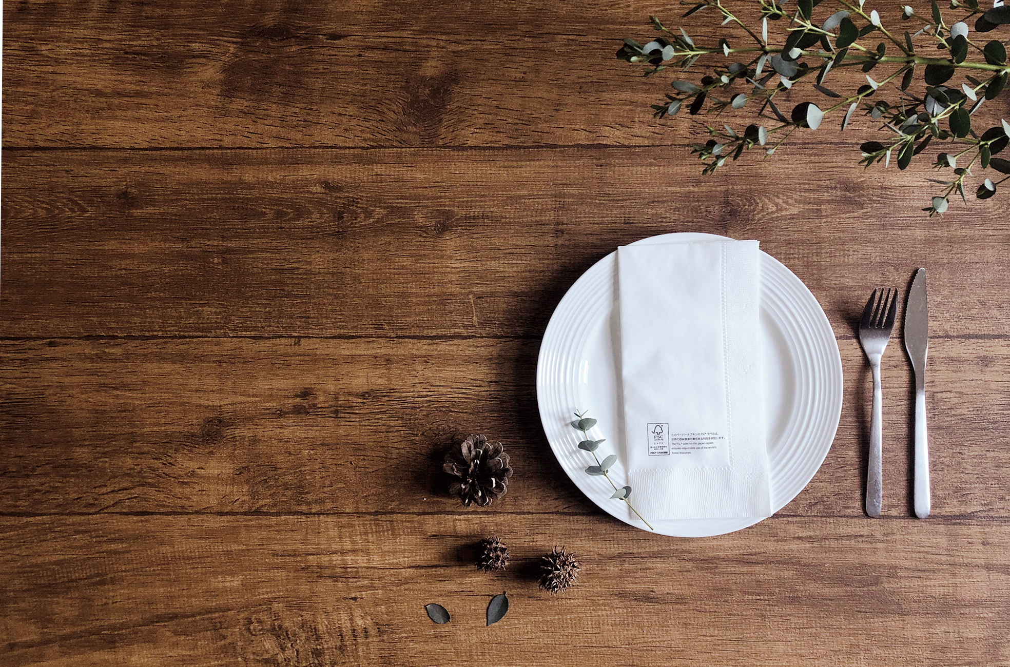 認証を取得した森林にやさしい商品。漂白をしない未晒しのナプキンなど。昨今の環境への配慮を求めるユーザー様のご期待に沿えるよう各種製品をご用意しています。