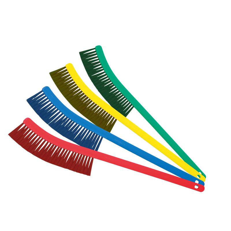 金属検出器に反応する特殊な毛材を用いた「金属検出器対応ブラシ」をラインナップ。かつ4色を揃えているのは、全世界を見渡しても高砂だけ、といっても過言ではありません。品質面においては、毛材に含まれる金属の含有率を限界まで高めるなど、日々精度を追求しています。