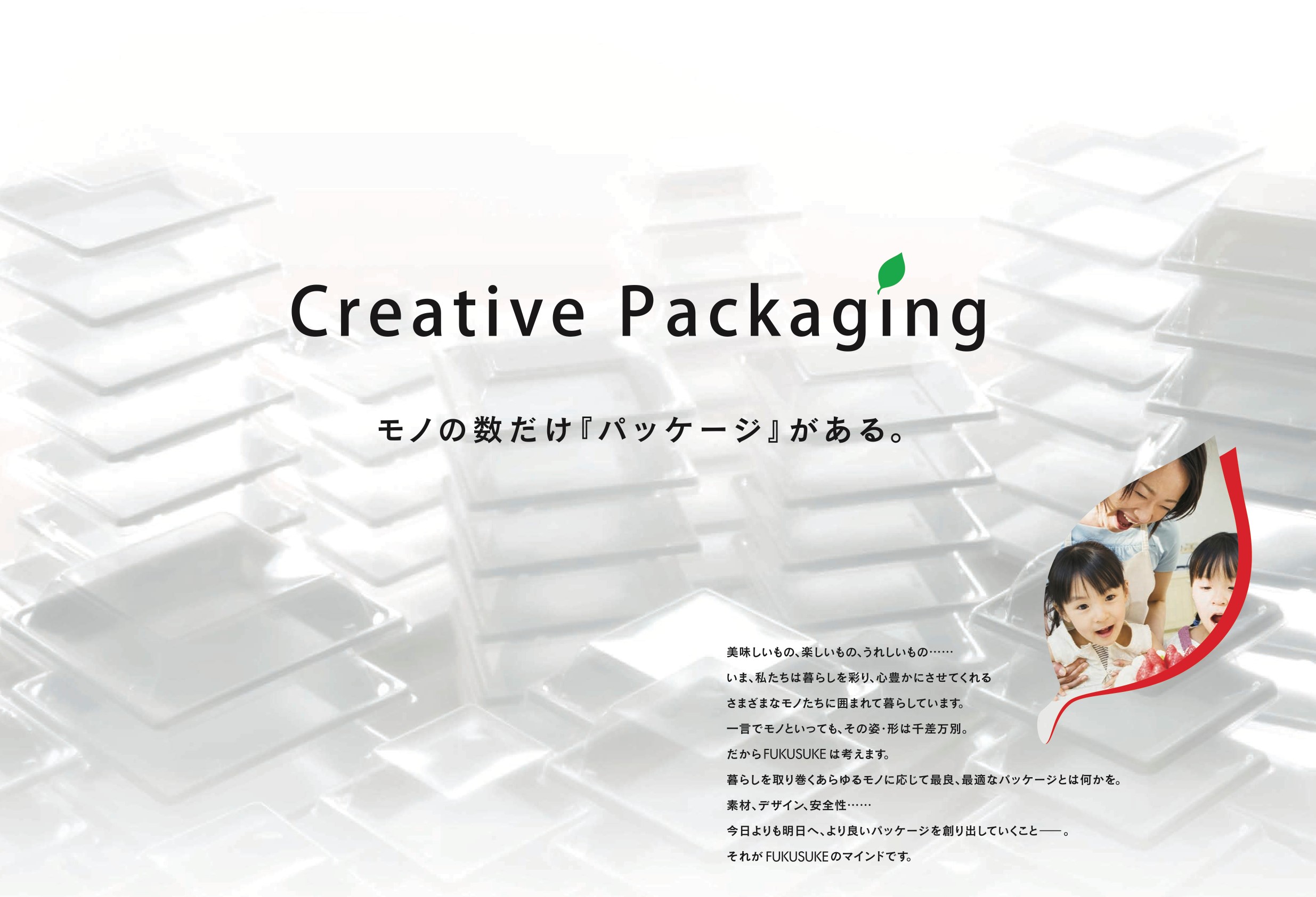 私ども福助工業は、明治43年の創業以来、包装資材の総合メーカーとして、心のこもった製品づくりに取り組んでまいりました。包装の使命と責任を果たすため、伝統の技をいかし、つねに時代に合った製品を最新の技術と創造力で開発しています。福助工業はいろんな場所で生産されたモノを大切に保護し、安全・安心にお届けできるより良いパッケージを創り続けます。