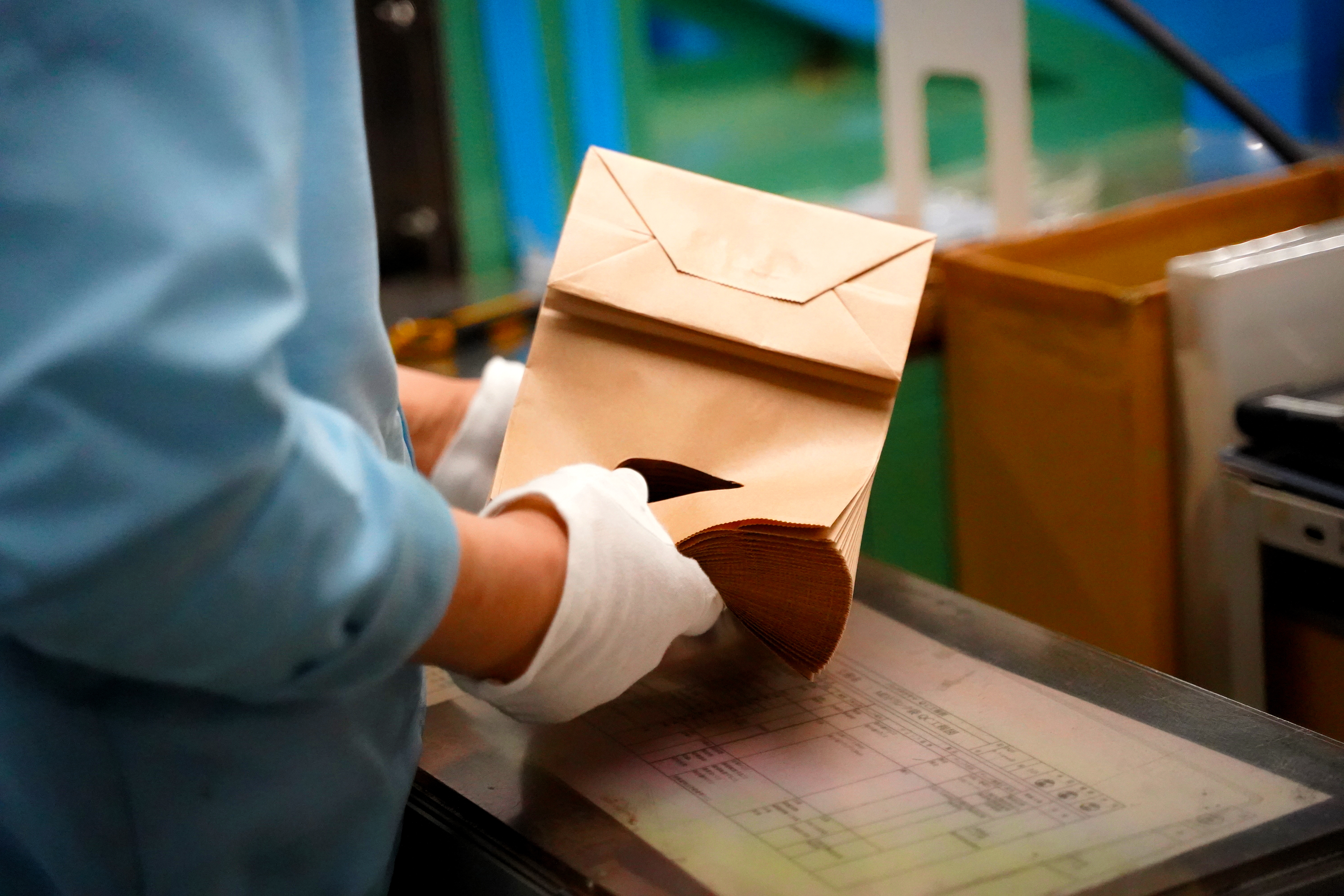 デザイナー同行によるグラフィックデザイン提案や、ブランド構築のお手伝いを承ります。既製品についても、全国津々浦々を訪問している営業マンが直接お客様からお伺いしたニーズをもとに、サイズや材質・加工についての改善や、新商品開発を行っています。24年12月より、話題のPFASフリー平袋の販売も開始しております。