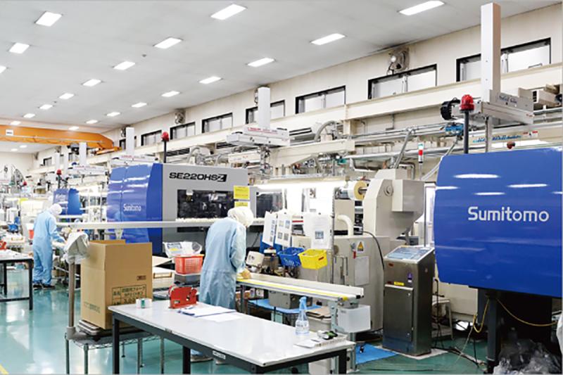日本と中国に計4つの自社工場を保有。最新鋭の成形設備や自動包装ラインを駆使して、クリーンな環境で、射出成形品・シート成形品の成形および包装・各種組立加工を行っております。日本で培った管理手法を中国でも展開し、日々厳格な管理体制で、均質かつ安心で安全な製品作りに努めています。