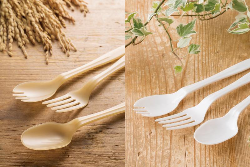 お米(非食用米)由来の国産バイオマスプラスチック「ライスレジン」や、植物由来樹脂を混合した「バイオプラ」など、環境に優しい商品に力を入れており、石油資源の節約とCO2 削減に貢献しています。