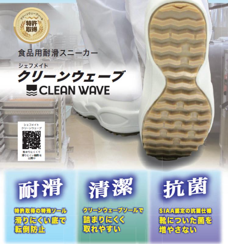 調理場やフロアでの作業を想定したシューズには、水や油に対する耐久性や、濡れた床の上でも転倒を防ぐ機能が求められます。当社のコックシューズは長年の開発により滑りにくい靴底の開発を進め、さまざまなタイプのコックシューズを取り扱っています。中でも東北大学と共同開発したモデルはこれまでにないアプローチで滑りにくさを実現しています。
