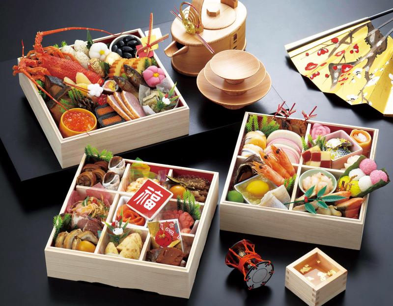 お節重箱・中子・風呂敷から、水引などの飾り、紙製や陶器の珍味入など、