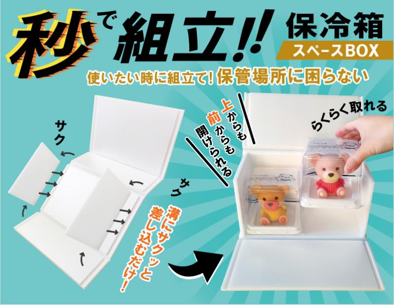 スペースBOXは溝に板をはめ込むだけで誰でも簡単に組立できる保冷箱です。板に秘密のこだわりがあるから綺麗に溝にサクッとはまります。使用時に組立てればいいので場所も取らず、保管場所に困っている小さな店舗様からも好評。ジェラート、アイス店様からの受注が多く、その他にスイーツ、鮮魚、精肉等幅広くご利用頂いてます。