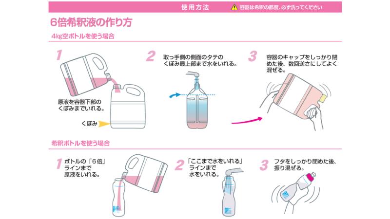 6~10倍に薄めて使用でき、業務用の大量洗浄でも高いコストパフォーマンスを実現します。