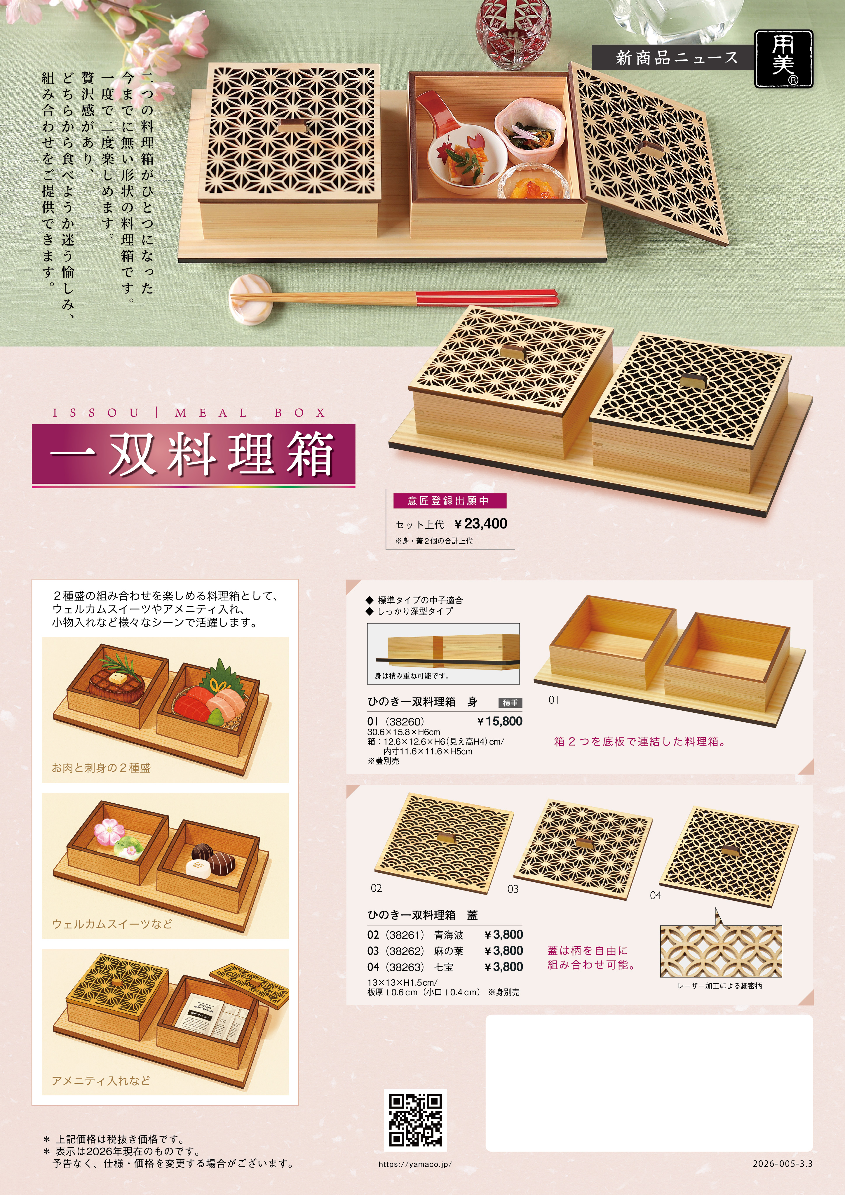二つの料理箱がひとつになった今までに無い形状の料理箱です。