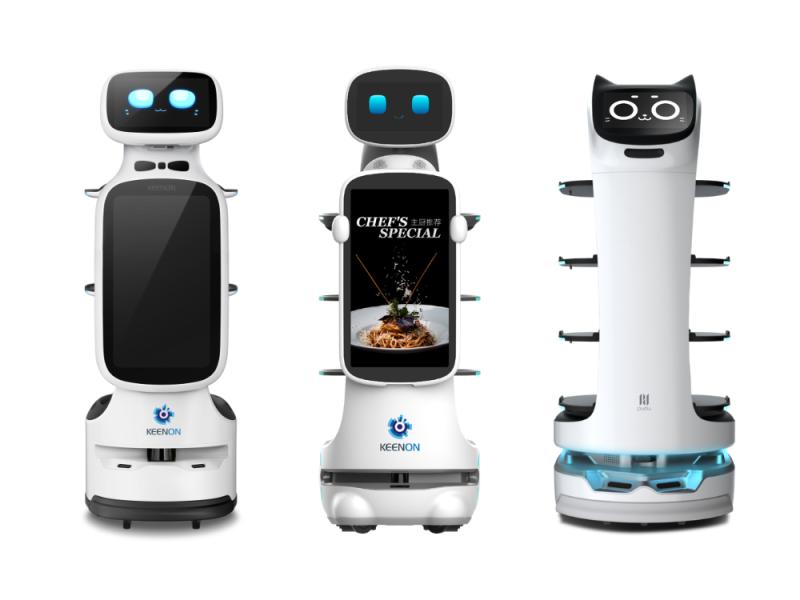 ・「BellaBot」: ネコ型の愛らしい表情とAI音声機能で、繁忙期の現場を和ませるムードメーカー。タッチセンサーによるインタラクションも可能で、配膳だけでなく「おもてなし」の心も伝えます。特にファミリー層や子供たちから絶大な支持を集めています。